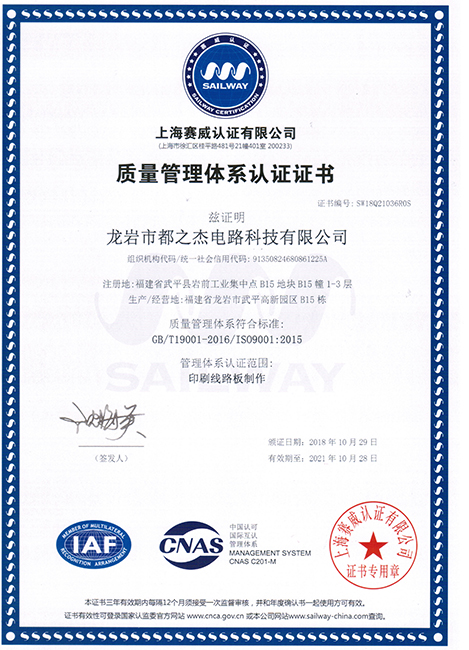 自1997年成立以來,都之杰已經(jīng)獲得ROHS產(chǎn)品認證,各項技術(shù)指標達到國家先進水平,質(zhì)量和信譽是企業(yè)的生命,我們一直以來持續(xù)不斷改善產(chǎn)品的質(zhì)量,以質(zhì)量取勝市場,提高公司的信譽度。多年來憑優(yōu)良的產(chǎn)品質(zhì)量、準時快捷的供貨和周到細致的服務,深得國內(nèi)外客戶的好評。我們已經(jīng)獲得良好的聲譽和客戶的信任,并逐漸成為客戶可信賴的、能長期合作的印刷線路板戰(zhàn)略合作供應商。我們堅持向國內(nèi)外先進企業(yè)學習并不斷提升自主創(chuàng)新。公司擁有經(jīng)驗豐富及穩(wěn)定的團隊,視質(zhì)量為企業(yè)生命,嚴格推行ISO9001質(zhì)量管理體系,符合ROHS標準,并獲得了UL安全認證、TS16949和CQC認證。
